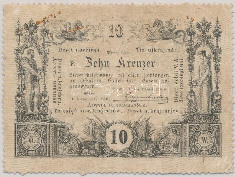 https://www.darabanth.com/en/219-Online-auction/219.0/Numismatics/Hungarian-Banknotes~200006/1860-10Kr-K-K-Hauptmunzamt-fur-Silberscheidemunze-vizjeles-papiron-fogazott-szelu-TII-~II935846