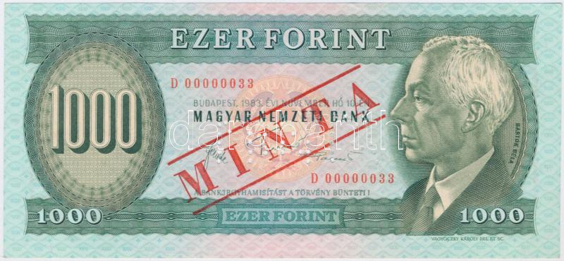 1983. 1000Ft "MINTA" felülnyomással és perforációval "D 00000033" sorszámmal T:I