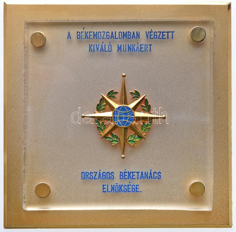 ~1980. "A békemozgalomban végzett kiváló munkáért - Országos Béketanács" plexi és aranyozott fém plakett (120x120mm) T:1-