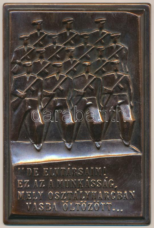 Description: Kiss Nagy András (1930-1997) 1977. "De elvtársaim! Ez az a munkásság, mely osztályharcban vasba öltözött... / Emlékül a Munkásőrség alapító tagjának a Munkásőrség országos parancsnokától 1977. II." Br emlékplakett (105x72mm) T:2