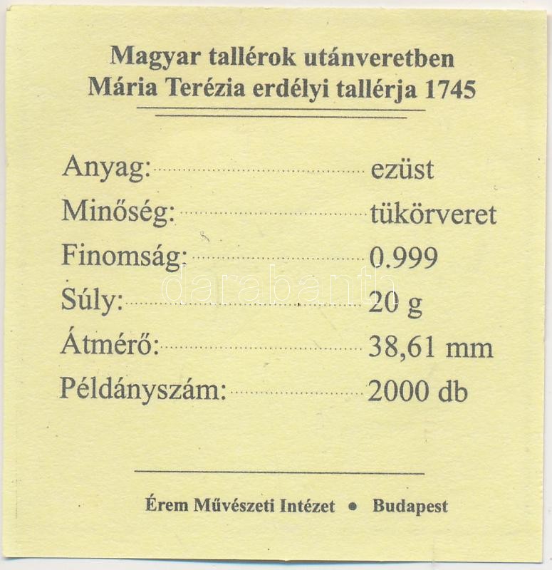 https://www.darabanth.com/en/219-Online-auction/219.0/Numismatics/Hungarian-commemorative-medallions~200008/Magyar-tallerok-utanveretben-Maria-Terezia-tallerja-1745-Ag-emlekerem-20g099938-6mm-T~II939564