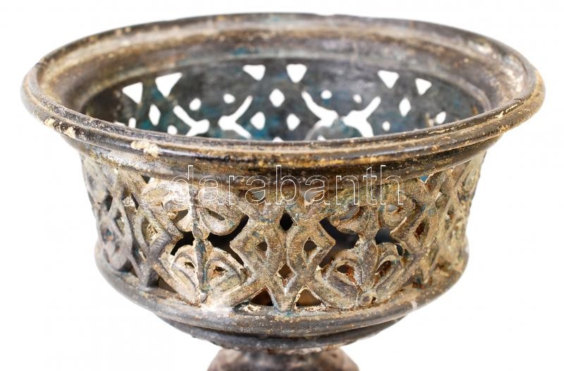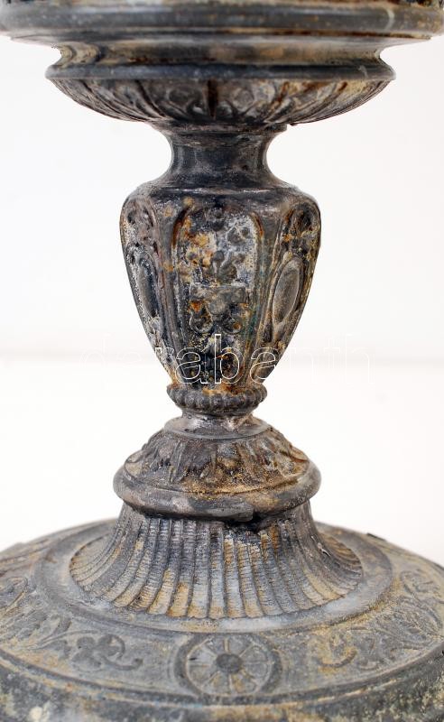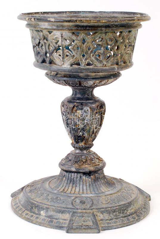 Antik ón kehely, gazdagon díszített, kisebb repedésekkel, jelzés nélkül, m:21 cm