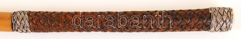 Lovaglópálca, nád?, ezüst (Ag.) drót díszítéssel, bőr markolattal, h:78 cm