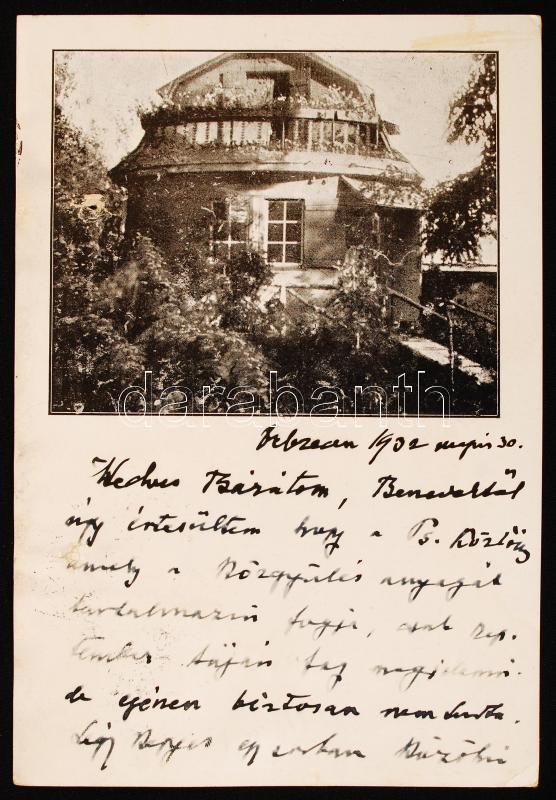 1932 Huzella Tivadar (1886-1950) orvos, biológus, rákkutató aláÃrása Boda István (1894-1979) pszichológusnak küldött, az alsógödi biológiai kutatóállomást ábrázoló, saját kézzel Ãrt képeslapján.