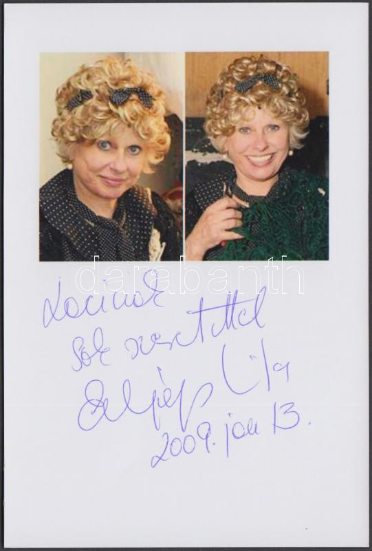 Esztergályos Cecília (1943-) Jászai Mari-díjas magyar színésznő, érdemes és kiváló művész aláírása az őt ábrázoló fotón