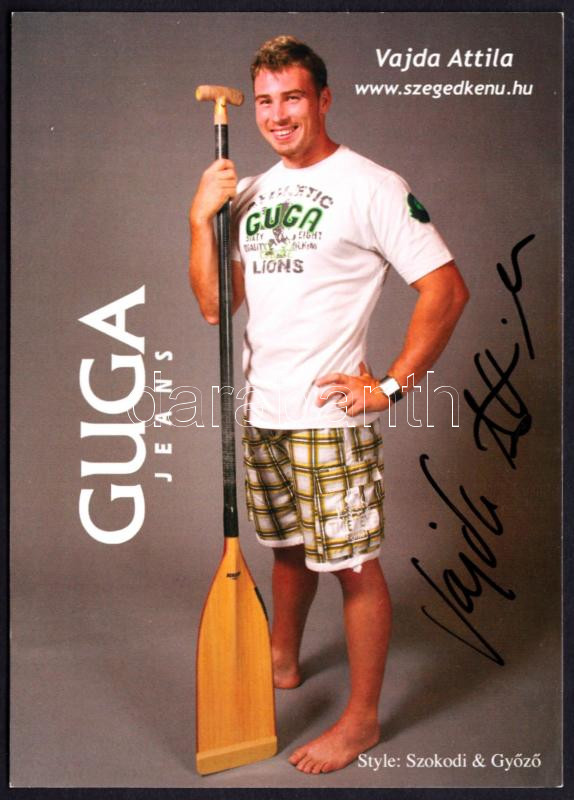 Vajda Attila (1983-) olimpiai bajnok magyar kenus aláírása az őt ábráz...