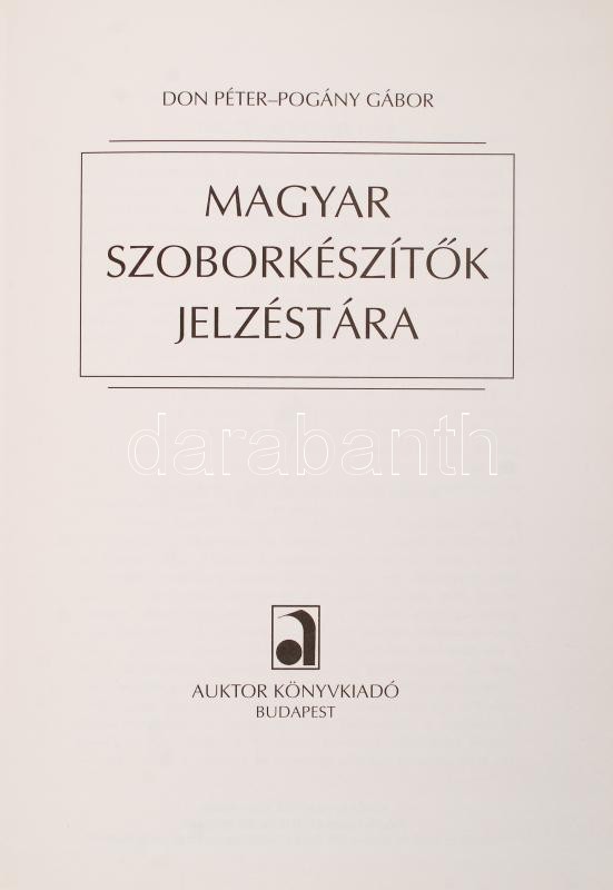 https://www.darabanth.com/en/219-Online-auction/219.0/Other-collectibles/Books-Architecture-Art~500023/Don-Peter-Pogany-Gabor-Magyar-szoborkeszitok-jelzestara-Bp-2003-Auktor-Kiadoi-ezustC3~II935831