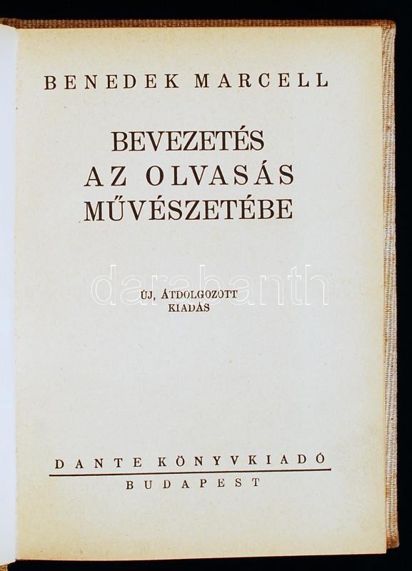 Benedek Marcell: Bevezetés az olvasás művészetébe. Új, átdolgozott kia... https://www.darabanth.com/en/219-Online-auction/219.0/Other-collectibles/Books-Other-rarities~500039/Benedek-Marcell-Bevezetes-az-olvasas-muveszetebe-Uj-atdolgozott-kiadas-Bp-1937-Dante~II913788