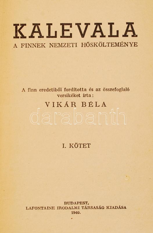 Kalevala. 1-3. köt. Ford.: Vikár Béla. Bp., 1940, Lafontaine Irodalmi ... https://www.darabanth.com/en/219-Online-auction/219.0/Other-collectibles/Books-Other-rarities~500039/Kalevala-1-3-kot-Ford-Vikar-Bela-Bp-1940-Lafontaine-Irodalmi-Tarsasag-Possessori-beje~II931211
