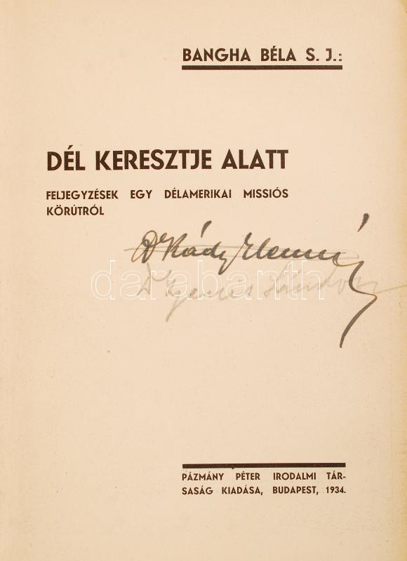 Bangha Béla S. J.: Dél Keresztje alatt- feljegyzések egy Délamerikai Missiós Körútról
