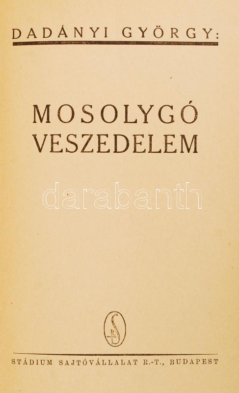 Dadányi György: Mosolygó veszedelem. Két év Grand Chacoban. Bp., Stádium Sajtóvállalat. Kiadói egészvászon kötésben