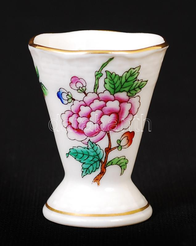 Herendi virágmintás fogpiszkálótartó, kézzel festett, hibátlan, jelzett, m:4,5 cm