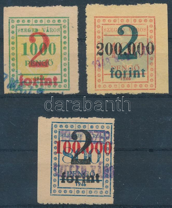 1946 Szeged városi illetékbélyeg 2Ft/1000P, 2Ft/100.000/800P, 2Ft/200.000/400P
