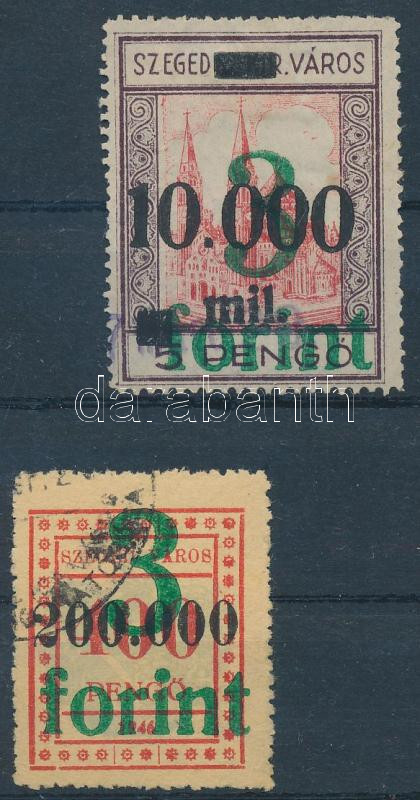 1946 Szeged városi illetékbélyeg 3Ft/10.000 mil./5P és 3Ft/200.000/400...