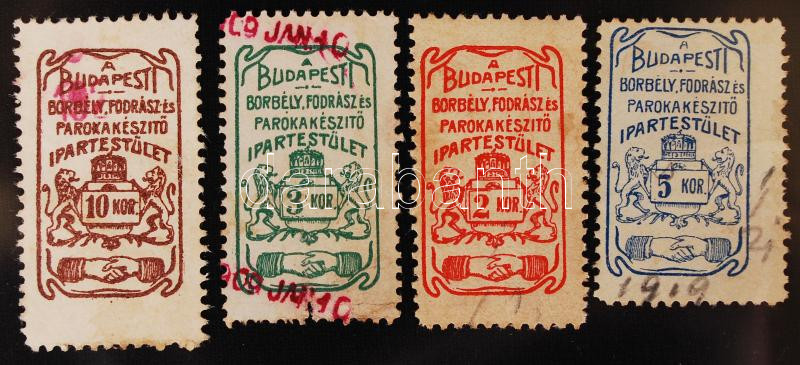 cca 1920 Budapesti Borbély, Fodrász és Parókakészítő Ipartestület 4 db tagbélyege