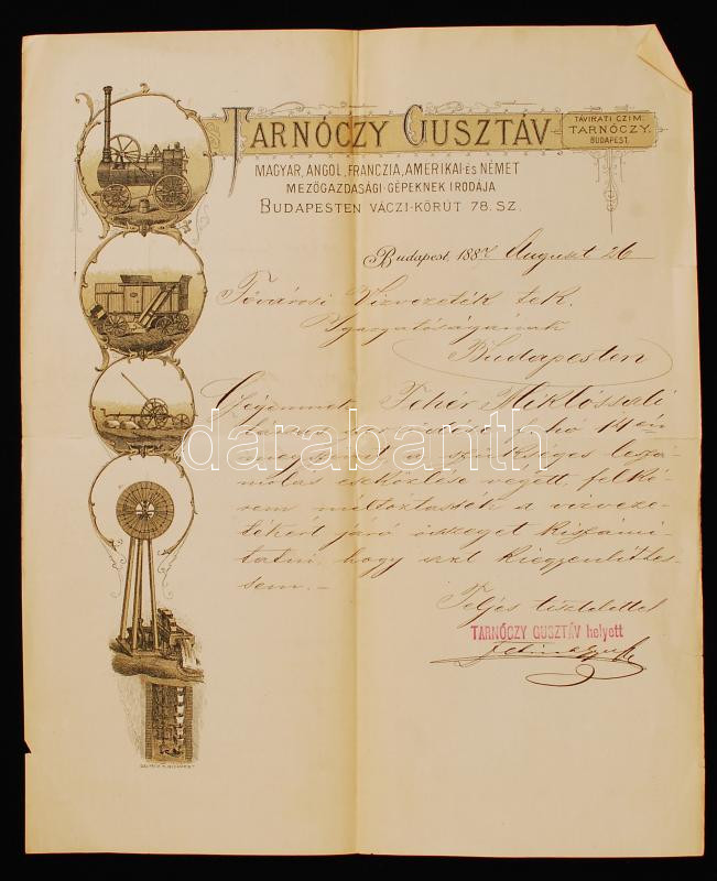 https://www.darabanth.com/en/219-Online-auction/219.0/Other-collectibles/Documents~500151/1887-Bp-V-Tarnoczy-Gusztav-mezogazdasagi-gepek-fejleces-szamla-Invoice~II933844