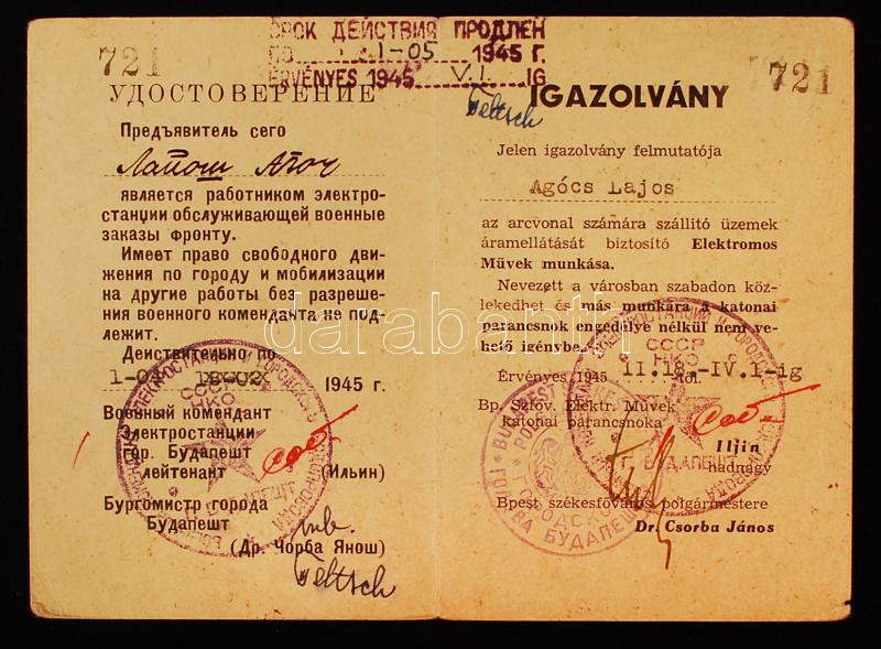1945 Bp., munkaviszony-igazolás, amelynek értelmében az illető személy... https://www.darabanth.com/en/219-Online-auction/219.0/Other-collectibles/Documents~500151/1945-Bp-munkaviszony-igazolas-amelynek-ertelmeben-az-illeto-szemely-katonai-engedely-nelkC3~II934432