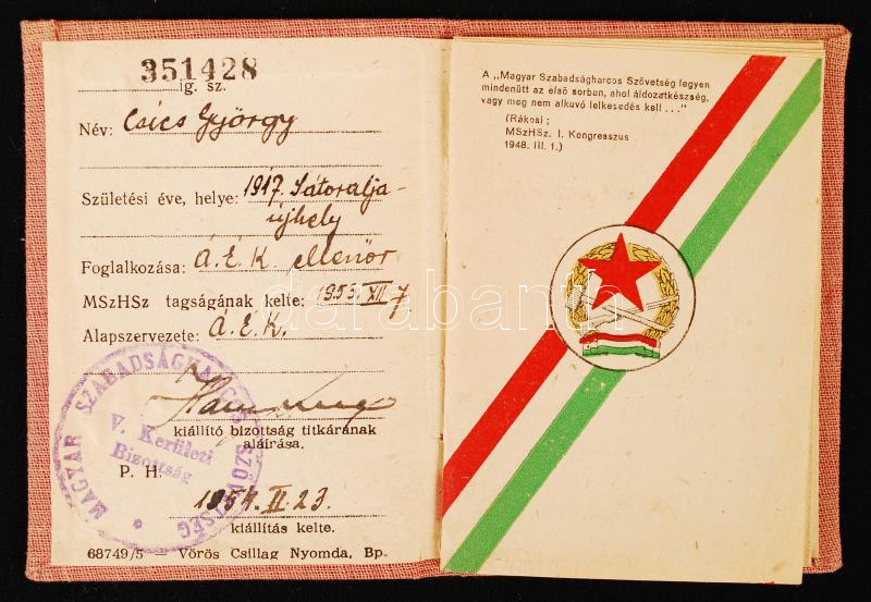 https://www.darabanth.com/en/219-Online-auction/219.0/Other-collectibles/Documents~500151/1954-Bp-A-Magyar-Szabadsagharcos-Szovetseg-tagsagi-igazolvanya-1-db-tagdijbelyeggel~II932667