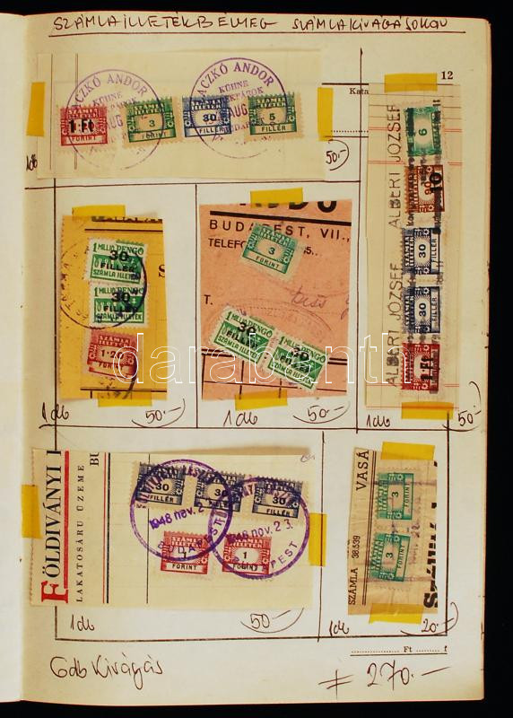 Okmánykivágások okmány- és illetékbélyegekkel, okmányok, képeslapok, a...