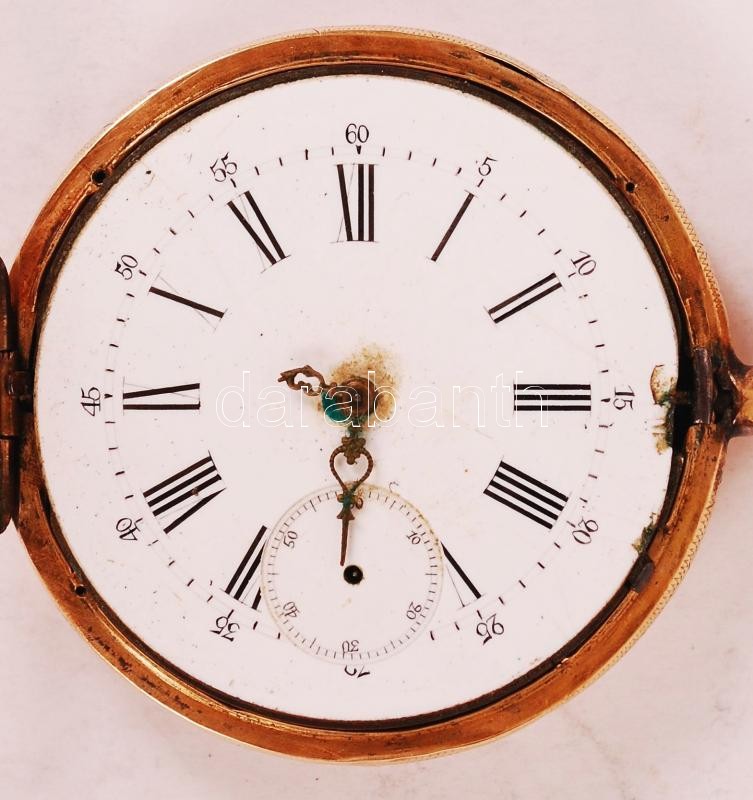 14 K arany tokos, fedeles francia Remontoir zsebóra. Nem működik, muta... https://www.darabanth.com/en/219-Online-auction/219.0/Other-collectibles/Jewellery~500041/14-K-arany-tokos-fedeles-francia-Remontoir-zsebora-Nem-mukodik-mutatok-uveg-hianyzik-Tisz~II899256