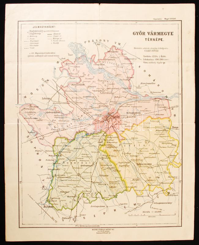 1929 Győr vármegye térképe, rajzolta Kogutowicz Manó, Magyar Földrajzi...