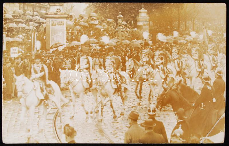 1912 Pallavicini Antal (1850-1916) őrgróf altábornagy huszárezredével Bécsben. Képeslap, hátulján az őrgróf üdvözlő soraival és aláírásával, bátyjának, Pallavicini Edének (1845-1914) címezve.