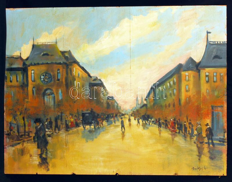 Berkes jelzéssel: Sugárút. Olaj, fa lemez, sérült, 52×70 cm