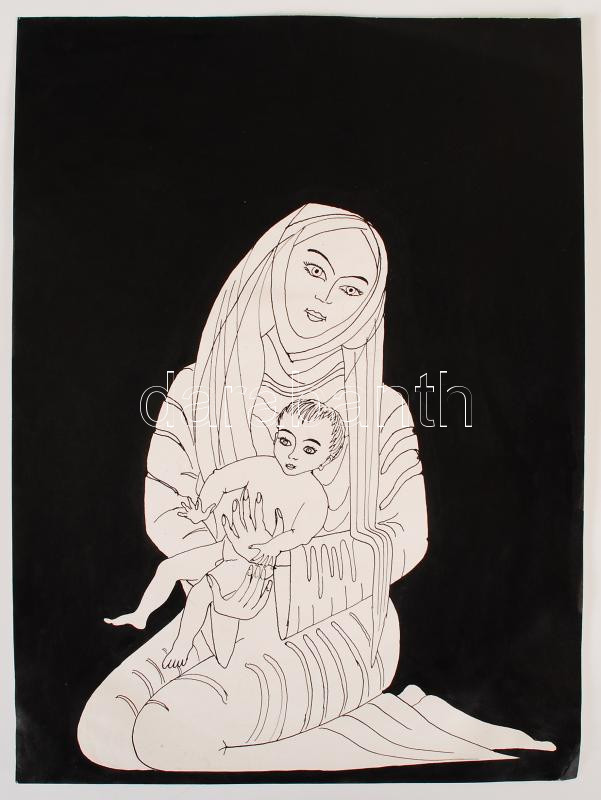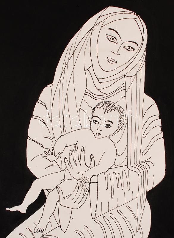 Jelzés nélkül: Anya gyermekével. Tus, papír, hátul dátum (1978) és cím...