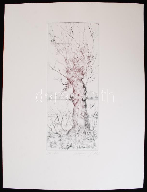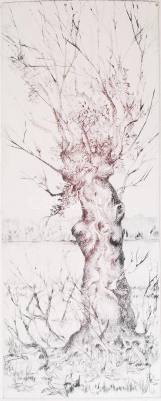 Kolozsvári G. Miklós (1950-): Fűzfa. Rézkarc, papír, jelzett, 24×10 cm