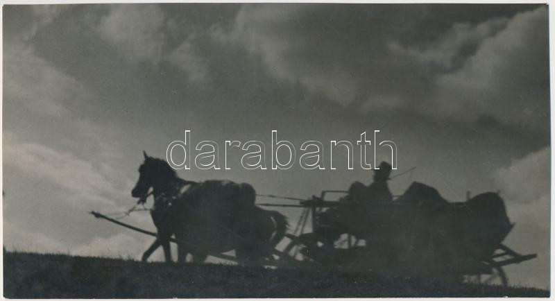 cca 1920 Helm Gusztáv: Vágtass Ráró, jön a vihar!, pecséttel jelzett vintage fotóművészeti alkotás, 12x23 cm