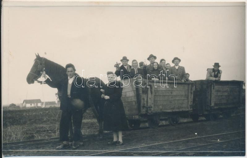 cca 1950 Bányászhintó utánfutóval, 9x14 cm