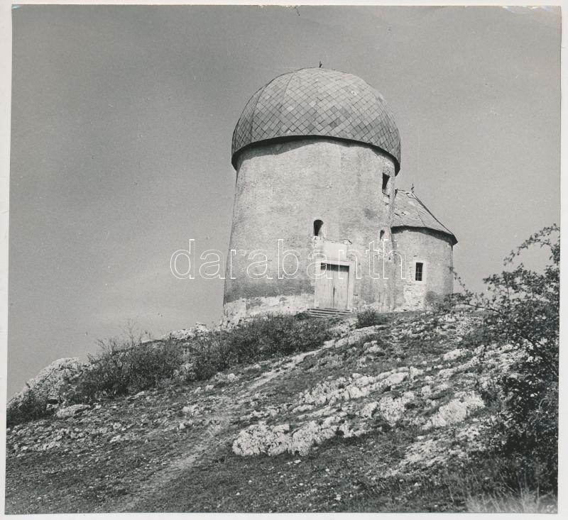 cca 1970 Öskü kerektemplom a XV. századból, Mo. egyetlen ilyen formátumú műemlék temploma, jelzetlen, Kotnyek Antal hagyatékából, 16x18 cm