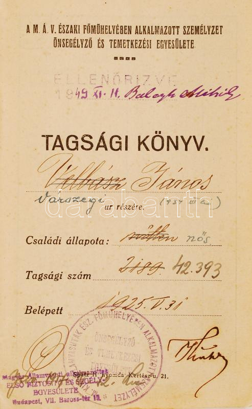 1925 A MÁV. Északi Főműhelyében Alkalmazott Személyzet Önsegélyező és ...