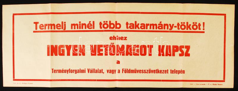 1949 "Termelj minél több takarmány-tököt! Ehhez ingyen vetőmagot kapsz" a Terményforgalmi Vállalat és a Földművesszövetkezet felhívása.