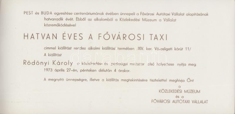 1973 Bp., A Hatvan éves a Fővárosi Autótaxi Vállalat kiállítására szóló meghívó