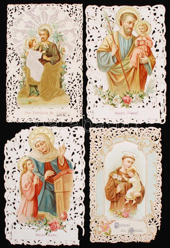 cca 1870-1890 4 db csipke, litho szentkép / Embroided litho greeting cards