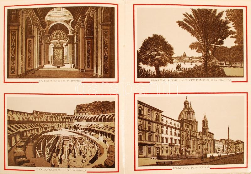 cca 1910 Ricordo di Roma, Róma nevezetességeit bemutató leporelló, 48 ...