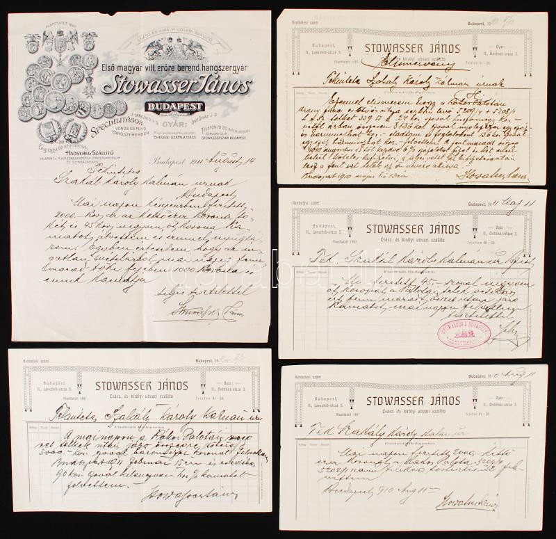cca 1910 Stowasser János 5 db fejléces, reklámos számla