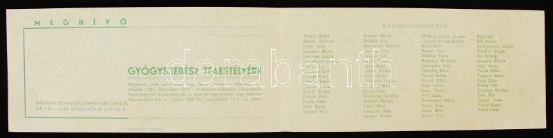 cca 1940 Gyógyszerész Tea. Estély meghívója. A papír rétegei elváltak