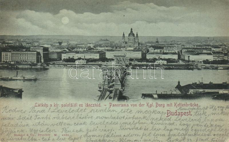 1898 Budapest, Lánchíd, Királyi palota, hajó (EK)