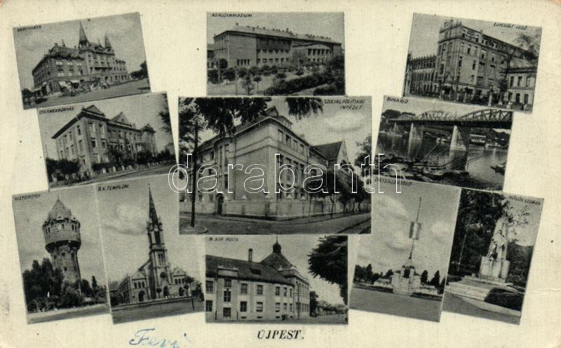 Budapest IV. Újpest, Reálgimnázium, posta, Egyesült izzó, Gyermekkórház, Szociálpolitikai intézet (fa)
