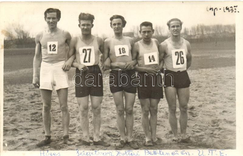 1935 Magyar mezei futóbajnokság csapata; Híres, Szigetvári, Zoltai, Bethlen / Hungarian running championship team photo (Rb)