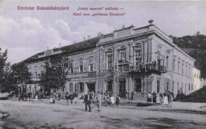 Boksánbánya, Arany szarvas szálloda, Takarékpénztár, A. Fonciere biztosító / hotel, bank, insurance company (EK)