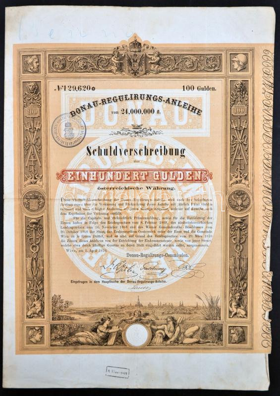 Ausztria / Bécs 1870. "Duna-szabályozási Kötvény" jelzálogkö... https://www.darabanth.com/en/22-Major-auction/22.1/Numismatics/Shares-Securities-and-Tickets~8654/Ausztria-Becs-1870-Duna-szabalyozasi-Kotveny-jelzalogkotveny-100G-rol-szelvenyekkel-C3~II1126722