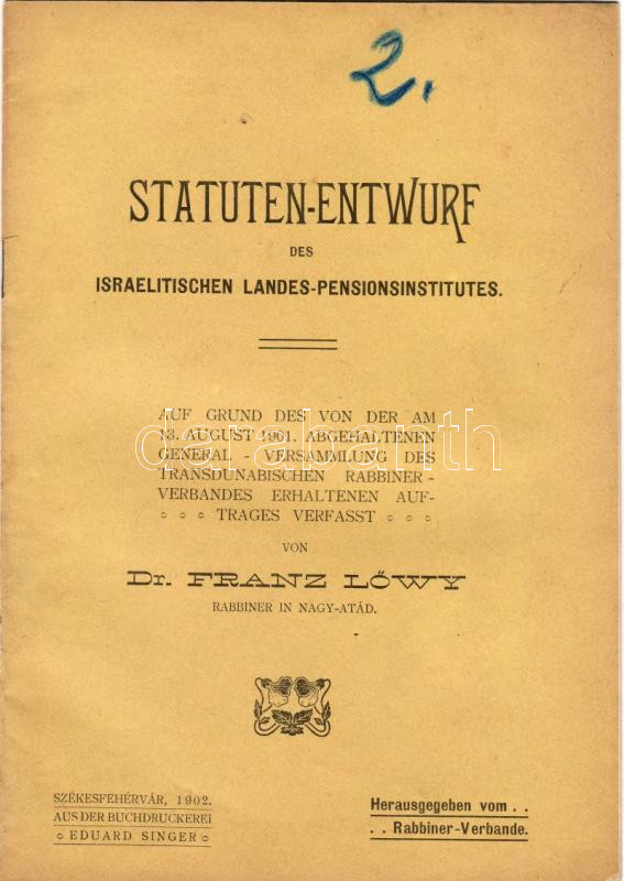 A dunántúli izr. nyugdíjintézet alapszabályai német nyelven; Székesfek...