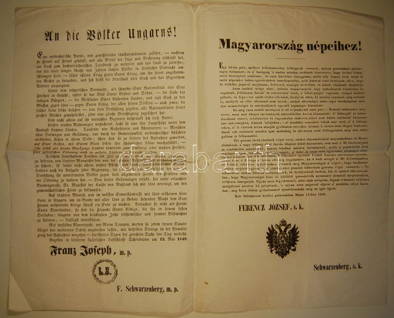 https://www.darabanth.com/en/22-Online-auction/22.0/Other-collectibles/~177/Ferencz-Jozsef-Schonbrunni-kialtvanya-1849-maj-12-magyar-es-nemet-nyelven~II42692