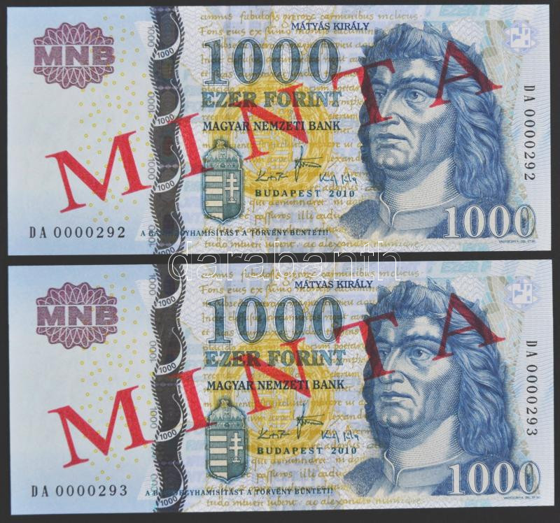 https://www.darabanth.com/en/220-Online-auction/220.0/Numismatics/Hungarian-Banknotes~20007/2010-1000Ft-MINTA-es-SPECIMEN-felulnyomassal-2x-DA-sorozat-Egymast-koveto-sorszammal-~II938633