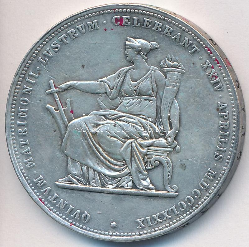Ausztria 1879. 2G Ag "I.Ferenc József és Erzsébet királynő / Ezüstlako... https://www.darabanth.com/en/220-Online-auction/220.0/Numismatics/Worldwide-coins~20012/Ausztria-1879-2G-Ag-IFerenc-Jozsef-es-Erzsebet-kiralyno-Ezustlakodalom-T2--3Cbr3EAustria~II948818