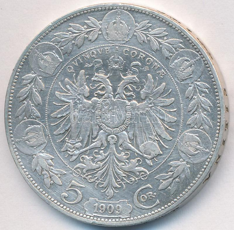 https://www.darabanth.com/en/220-Online-auction/220.0/Numismatics/Worldwide-coins~20012/Ausztria-1909-5K-Ag-Ferenc-Jozsef-T2-2--3Cbr3EAustria-1909-5-Corona-Ag-Franz-Joseph-CXF-VF-3C~II948070