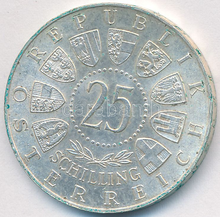 Austria 196... https://www.darabanth.com/en/220-Online-auction/220.0/Numismatics/Worldwide-coins~20012/Ausztria-1963-25Sch-Ag-Szavolyai-Jeno-herceg-T2-patina-3Cbr3EAustria-1963-25-Schilling-Ag-300t~II948770